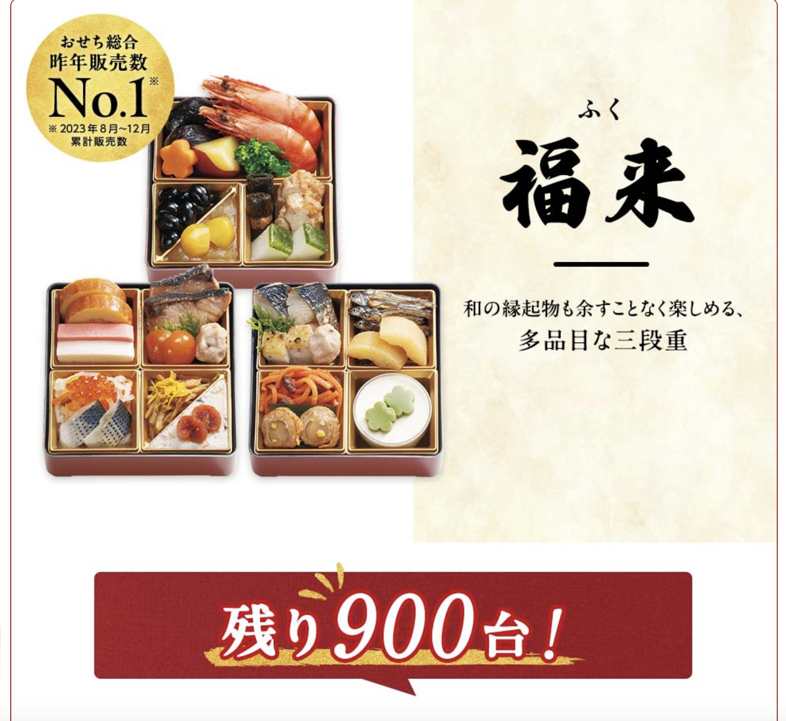 忙しい年末でも手軽に準備ができ、家族で安心して食べられる品質の高さが人気の理由。予約販売のため、毎年早い段階で注目される商品です。